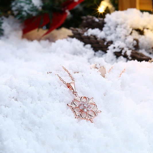 Frozen Snowflake Necklace in 18K Rose Gold Plated - Christmas